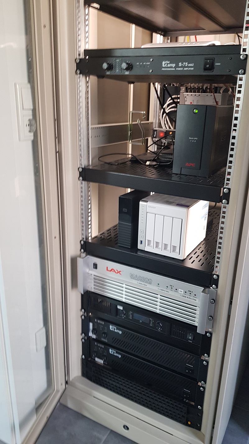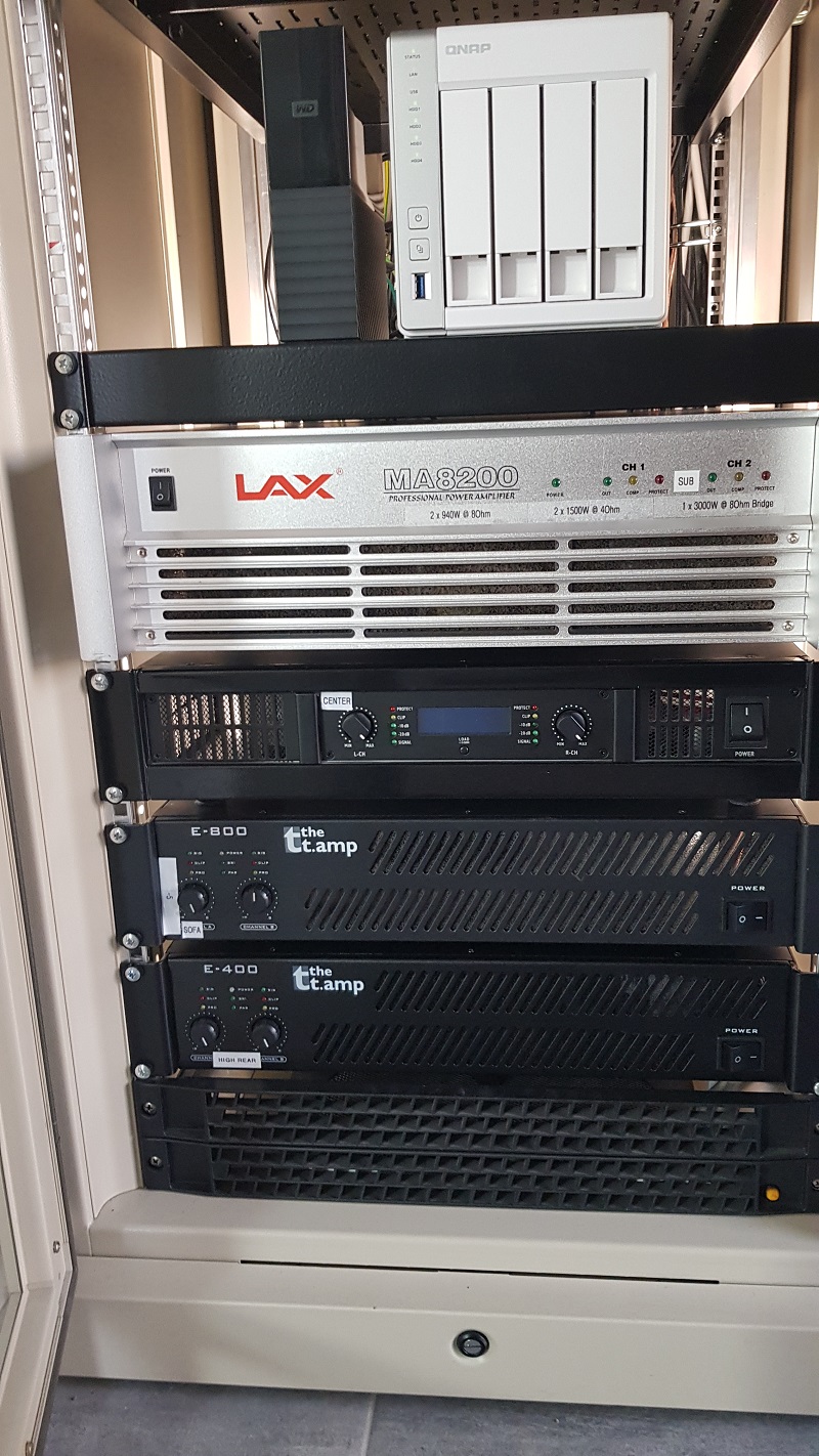 Insgesamt sind nun 7 PA Endstufen plus AVR im Einsatz.