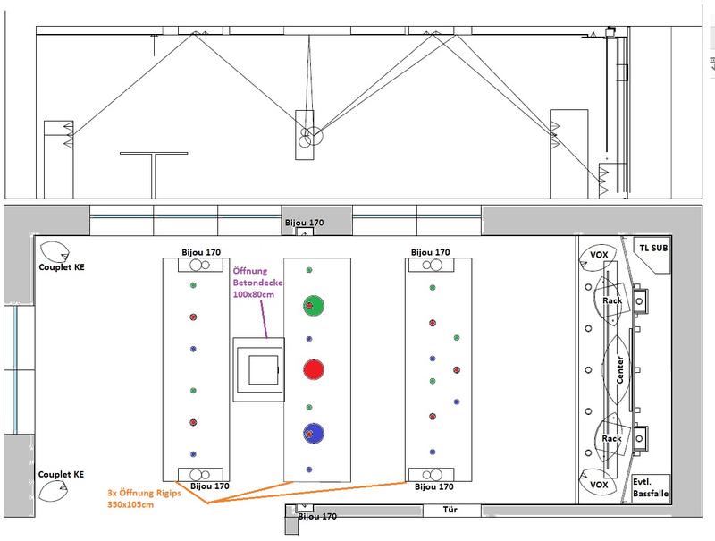 Wir sind umgezogen und bauen gerade, ich habe das Kino wieder in das Wohnzimmer eingeplant, aber dieses mal mit allem was nur geht um es unsichtbar scheinen zu lassen :-)