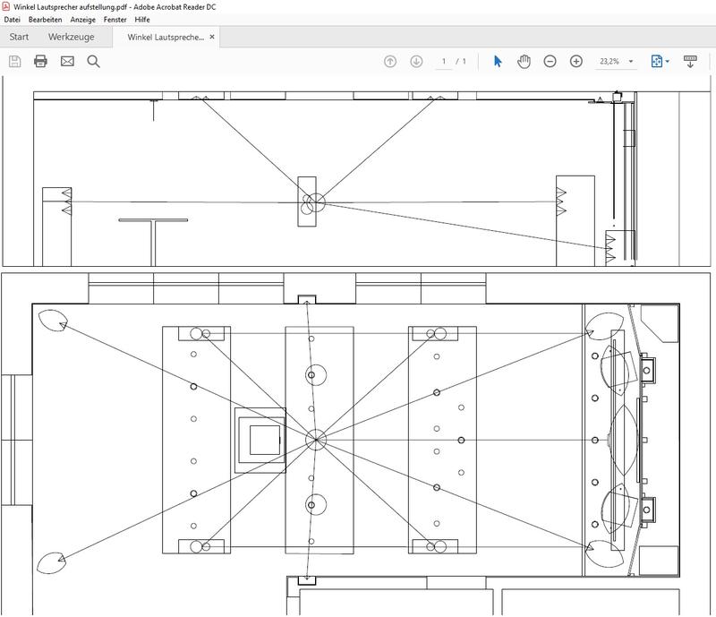Die Winkel der Lautprecher zum Hörplatz (ohne Winkelangaben)