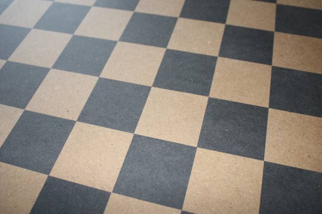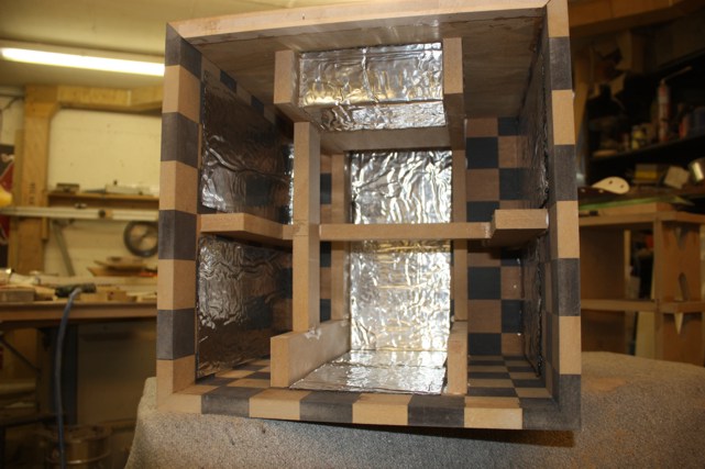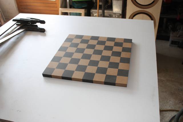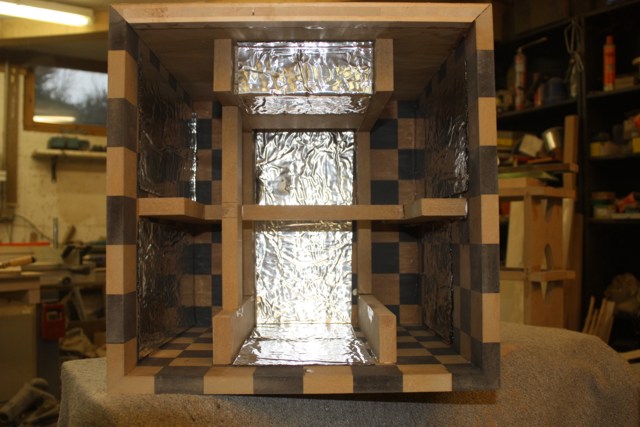 Dabei sind eine Menge schwarzer MDF-Streifen in unbrauchbaren