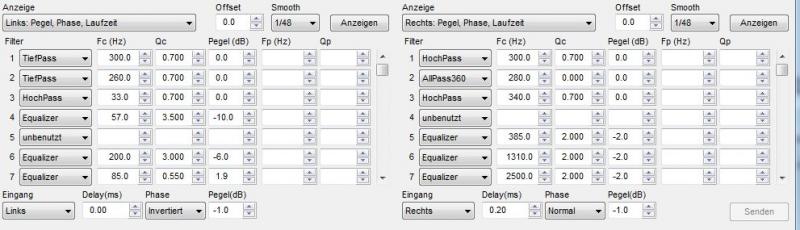 Ich verwende ja auch 2 DSP der Hifi-Akademie an 2 Stereo-Endstufen und habe damit die Condorde teilaktiviert, nur die Trennung MT-HT ist noch aktiv.
