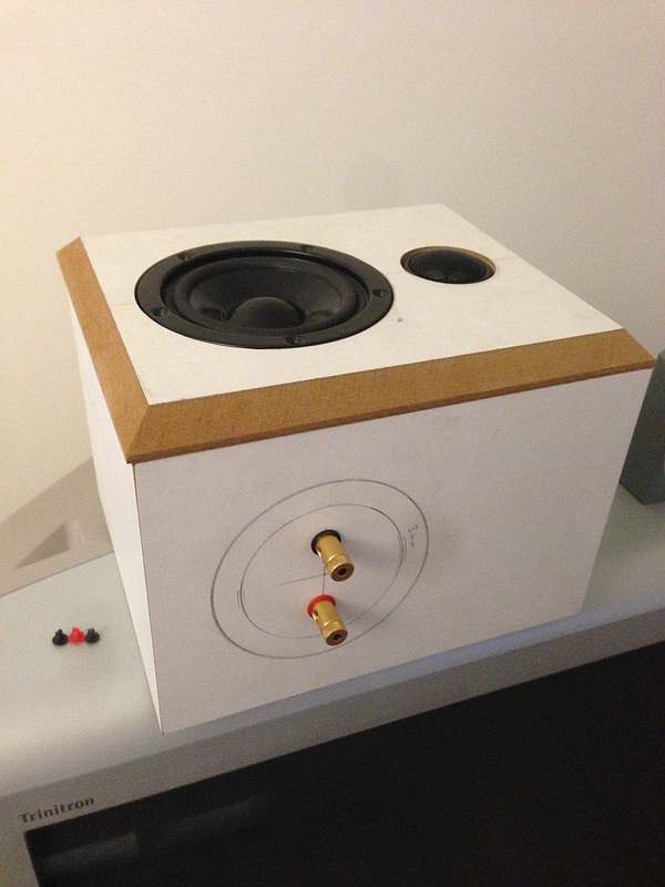Da die Boxen weiß lackiert werden, sollte nicht noch mehr schwarzes zu sehen sein an der kleinen Box.