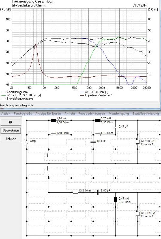Wenn du mit DSP anhebst, bekommt die Kalotte 10 dB mehr Leistung, das sollte sie aber verkraften. Probier es mal aus. Die Reso bei 25 kHz wird ohne Gitter (+ Ring) nicht bedämpft, wenn du Hund/Katzen hast, beobachte sie mal. Ich fan das nicht so tragisch ohne Gitter, aber meine Lauscher haben einen altersbedingten Tiefpass bei 12-14 kHz.Angehängte DateienZuletzt geändert von walwal; 14.03.2014, 10:27.„Audiophile verwenden ihre Geräte nicht, um Ihre Musik zu hören. Audiophile verwenden Ihre Musik, um ihre Geräte zu hören.“