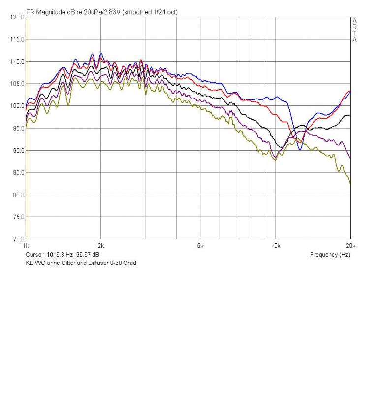 Deine Ohren haben Dich nicht im Stich gelassen, keine Ahnung was ich da im Kopf hatte als ich schrieb:Habs nochmal probiert und die Schlimmheit des ganzen entspricht dem was Du gehört hast, über 10kHz gibts ohne dem Gitter einen Turbo im F-Gang unter Winkel, irgendwie hab ich da was verwechselt gehabt.Gitter mal komplett entfernt....Unter Winkel ändert sich nicht viel, erst unter größeren Winkeln zeigt sich eine leichtere Aufweitung über 10kHz, aber nicht so stark ausgeprägt wie mit Diffusorgitter