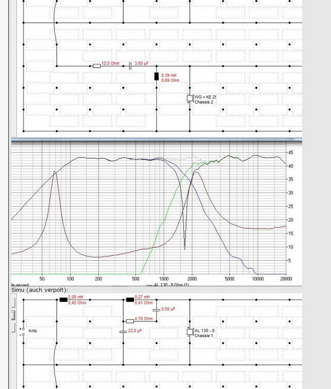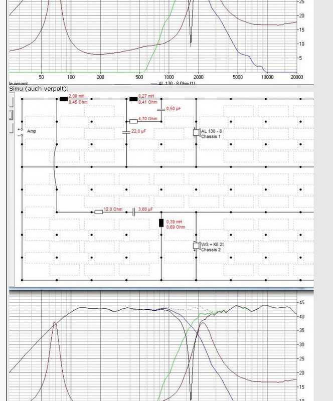 Es ist bei der ersten simulierten Weiche geblieben, die Variante mit 10 statt 12 Ohm im Hochton und 4,7 statt 3,0 µF war laut Messung und Hörtest schlechter.
