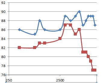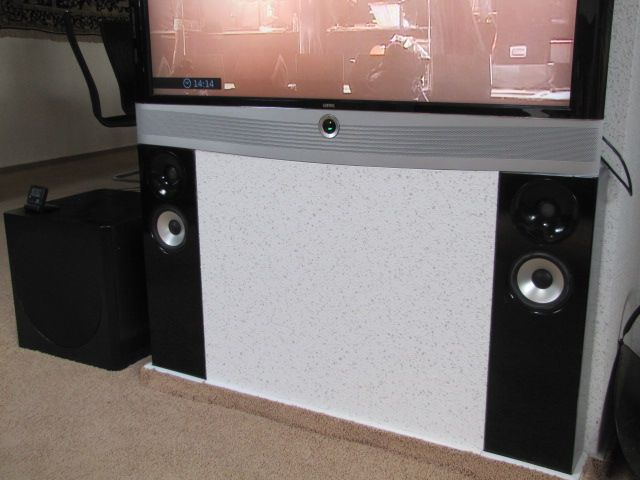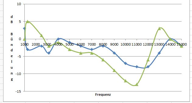 Die Messungen erfolgten mit einem Kondensator-Mikro in 40 cm Abstand und auf halber Höhe zwischen HT und TT. Eine Test-CD mit Sinustönen wurde über den AVR abgespielt und die rel. dB gemessen mit einem Profi-Multimeter. Sie sind nicht professionell, aber das Ergebnis überzeugte mich. Mehr dazu später.