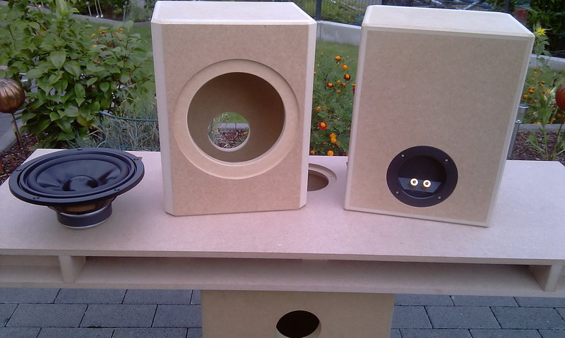 Nachdem ich mich hier (gekürzte ehemalige Alto 3 Gehäuse) mal an die Optik gewöhnt habe , sind die Rohbauten soweit fertig. Außenmaße 30cmx23cmx19cm, somit 7,5 liter netto. Wolfgang hat mir netterweise auf Anfrage die Maße der HT Halterung mitgeteilt, Vielen Dank an dieser Stelle dafür. Die sind noch nicht ganz fertig, ebenso die einfach aufzubauenden Weichen.