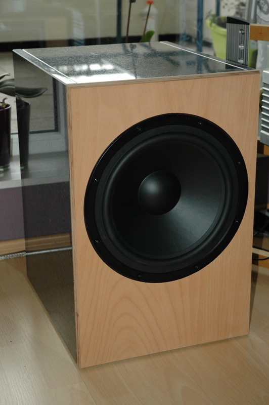 Front ist Buche Multiplex 18 mm, darunter ist noch ne 19 mm Spannplatte fürs Fleisch, Rückwand auch Buche mit einem eigenen Gehäuse für den Amp.