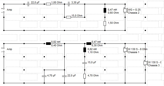 Chassis: 2x W130S 8Ohm und G25FFL im Waveguide