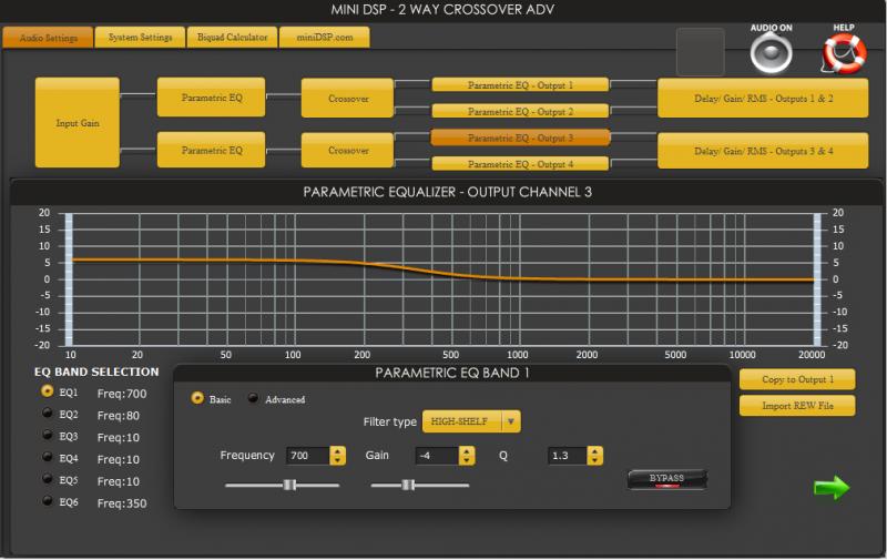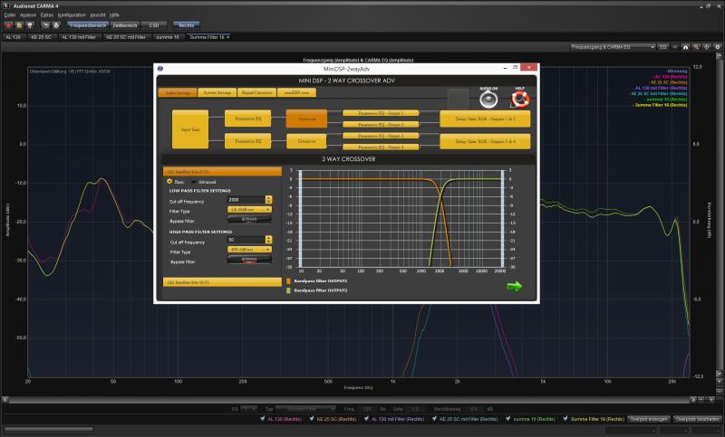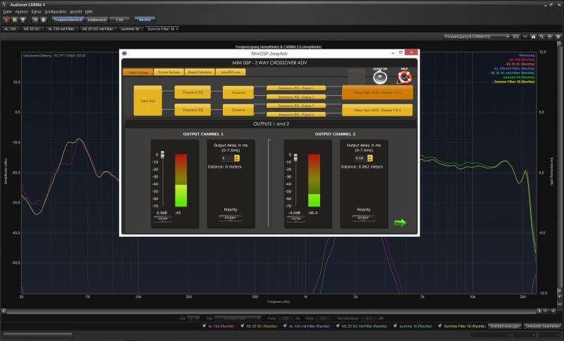 Angetrieben wir die Box von zwei ICE Power250ASX2 Modulen.Angesteuert von der MiniDSP 2x4 Balanced als Weiche.