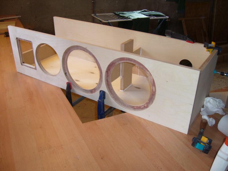 Die Box ist aus 18mm Birke Multiplex gefertigt und mit Lasur Geschmacksrichtung "Nussbaum" bearbeitet.