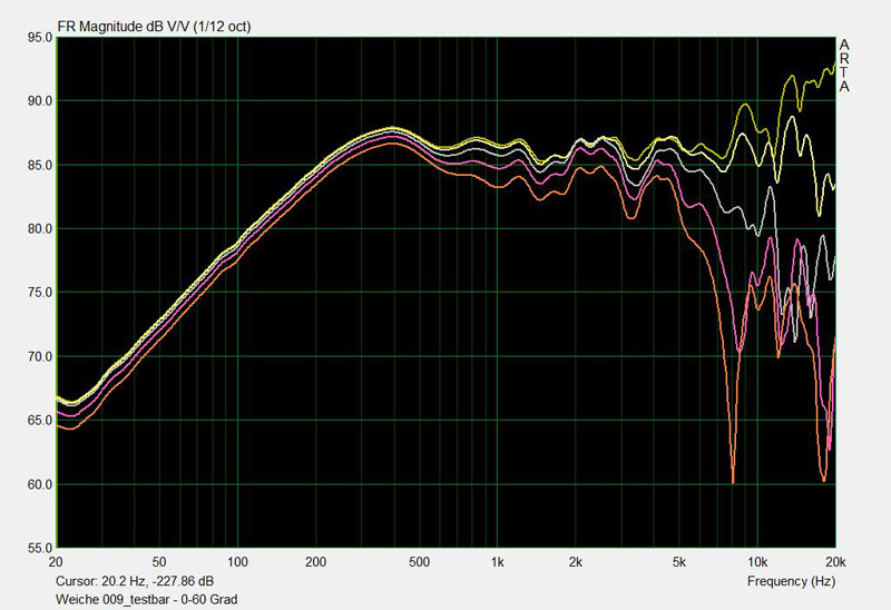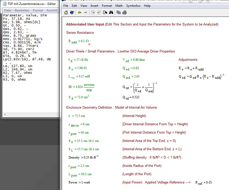 die optimale Position des Ports lässt sich mittels des MJK-Sheets sehr realitätsnah simulieren. Deiner Grafik habe ich die etwaigen Positionen von Chassis und Port mit etwa 8 cm und 40 cm von der Innenseite des oberen Teilers entnommen. Bei einem 10,3 cm langen und 4,6 cm durchmessenden Port führt das zu folgendem Amplitudenverlauf: