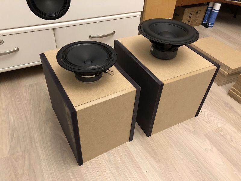 Ergänzt werden die Solos durch zwei Nelson-Subs mit Wavecor Chassis, die sich von der Größe her perfekt einfügen. Diese werden durch eine Yamaha-PA-Endstufe angetrieben werden, das ganze dann per Audyssey eingemessen. Und im Hinterkopf habe ich noch den miniDSP, falls ich mit dem Ergebnis nicht zufrieden sein sollte.