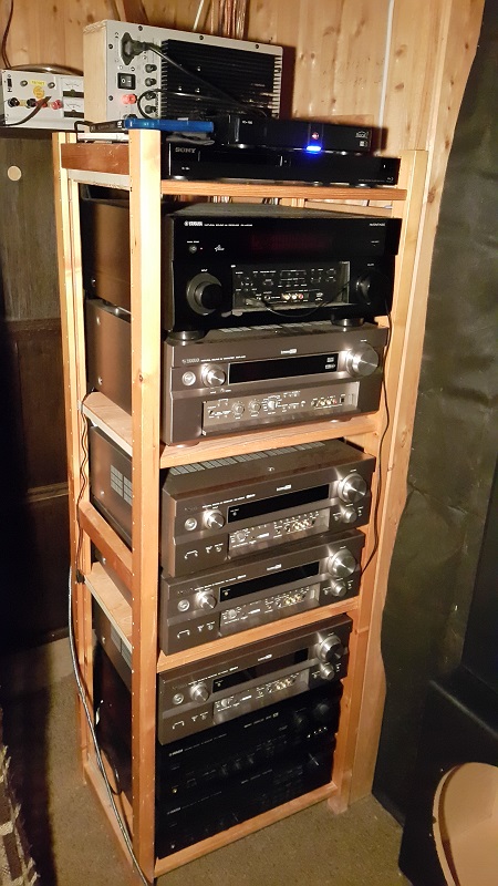Momentan sind bereits 4 zusätzliche AVRs nur für die ProLogic Erweiterungen im Einsatz, mit Front Height Center sinds dann 5. Spätestens mit der Gerzon Matrix muss ich dann ein deckenhohes Rack bauen, weil das jetzige Regal ist mittlerweile an der Fassungsgrenze.