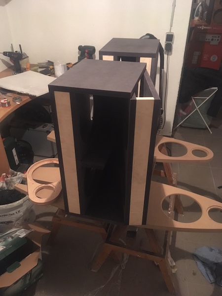Da ich die Chassis aber weiterbenutzen möchte, werden daraus nun Belle CR MHT´s. Diese werden später aktiv sowie passiv entwickelt, da ich 3 2Wege aktiv Module besitze werden die Fronts an jeweils einem Kanal passiv betrieben und die Subs am anderen Kanal aktiv. Der Center wird Vollaktiv. So ist also alles nachbausicher für etweige Interessenten.