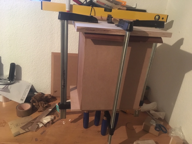 Und hier die ersten Bilder vom Bau der Belles.Furnier wird mit Saraifo Mahagno furnier