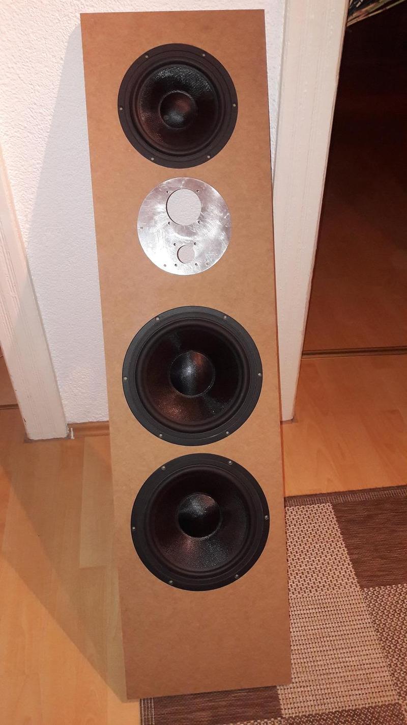 ja in die Richtung hatte ich auch überlegt bevor alles begann, mit 2 GF200 oder GF250 im 3,5 Wegerich. Im Weg dafür standen aber leider die "Lautsprecherpsychosen" die sich im Laufe der Jahre gebildet haben. Da das ganze komplett passiv laufen soll möchte ich ein 3,5 Wege System nicht da die beiden Tieftöner passiv nie phasengleich beschaltet werden können, einer hinkt dem anderen zeitlich immer etwas hinterher. Zum anderen möchte ich den Grundtöner vom Hub entlasten das dieser auch wenn es laut wird stressfrei spielen kann. Zum anderen schafft man sich im Laufe der Zeit sein ideales Bild eines Lautsprechers, was immer das auch für einen selbst sein mag. Z.B. gefällt es mir besser wenn die Tieftöner recht weit unten im Gemüse hängen, sieht besser aus, wieder eine der Psychosen. Ob das jetzt auch hörbar ist oder nicht ist mehr zweitrangig weil der Hinterkopf einfach immer da ist. Vielleicht nenn ich den Lautsprecher hier Psychose wenn er fertig ist, mal sehn.
