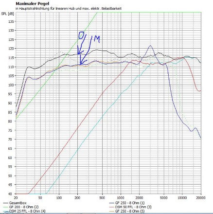 ich habe dir mal den Vergleich in der neuen Boxsimvariante gemacht, im Grundton zeigen die Boxen mit (M) und ohne (O) GF200 deutliche maxpegelunterschiede, ...