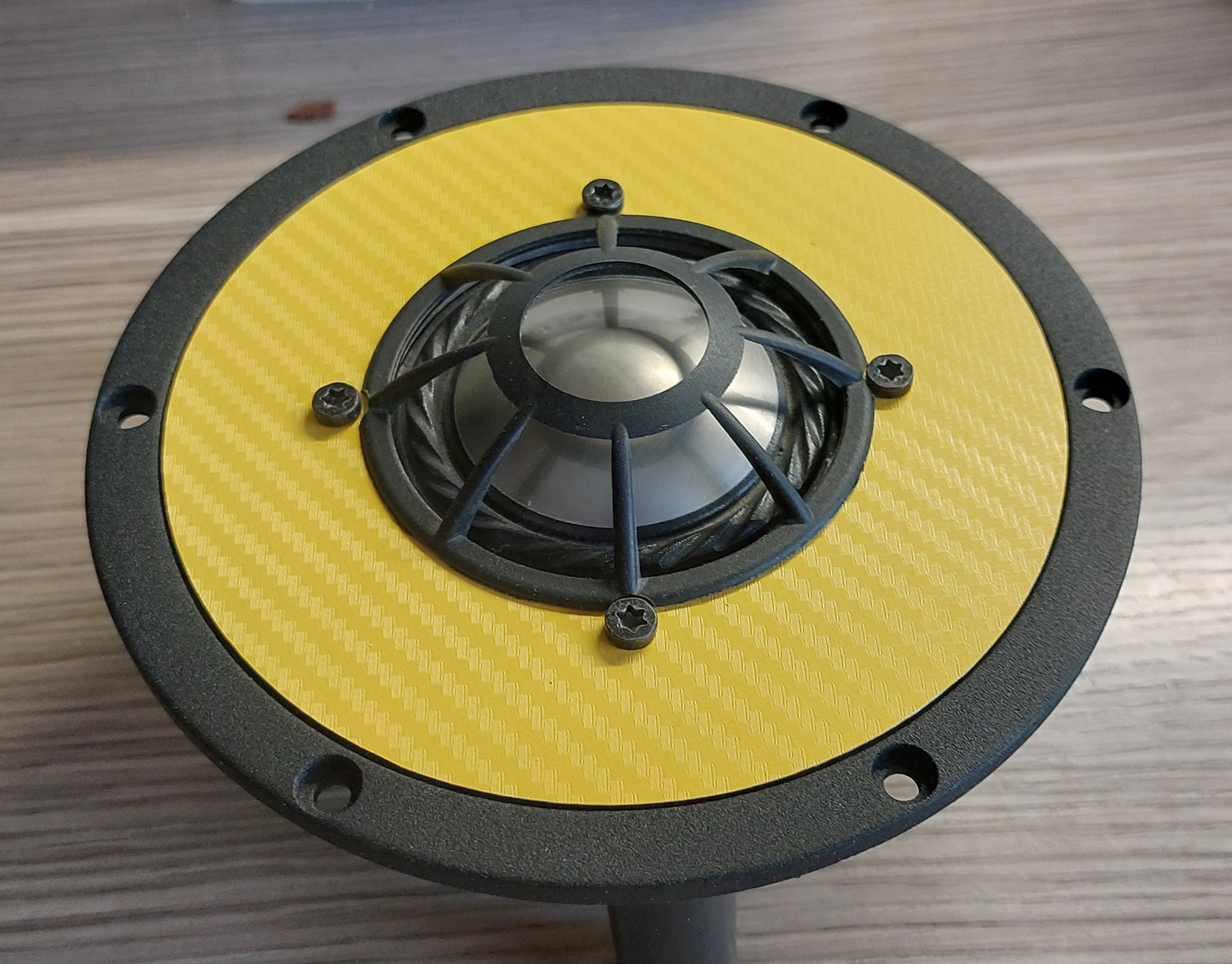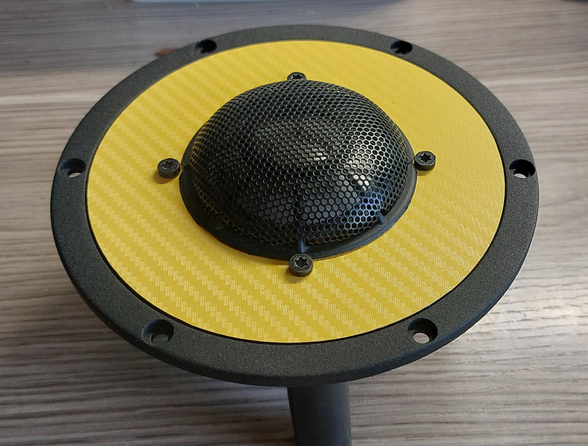 Die gelbe Karbonfolie ist nicht sofort aus jedem Winkel als Karbonfolie zu erkennen, dafür ist der Farbschlag scheinbar nicht so gut geeignet. Eventuell mal mit Farbe mit weniger Intensität probieren. Aber das hat erst mal noch Zeit. Oder nur die schwarze Version belassen.