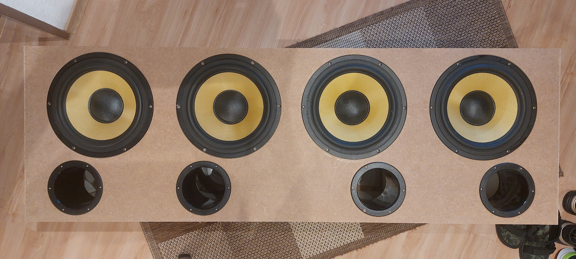 Wollte erst die Tieftöner nicht einfräsen um die Aludruckgusskörbe sehen zu können, aber da sich Folie nun mal unter Druck löst und kleine Blasen wirft nun doch, reingezogen in die Ausfräsung passiert nichts. Bin gespannt wie das Ding wirkt wenn es fertig bezogen, beglast und bestückt ist. Klicke auf die Grafik für eine vergrößerte Ansicht  Name: 20240809_180855.jpg Ansichten: 0 Größe: 868,7 KB ID: 721866 Klicke auf die Grafik für eine vergrößerte Ansicht  Name: 20240809_183234.jpg Ansichten: 0 Größe: 236,5 KB ID: 721867 Klicke auf die Grafik für eine vergrößerte Ansicht  Name: 20240809_182430.jpg Ansichten: 0 Größe: 572,9 KB ID: 721868 Klicke auf die Grafik für eine vergrößerte Ansicht  Name: 20240809_200646.jpg Ansichten: 0 Größe: 611,1 KB ID: 721869 Klicke auf die Grafik für eine vergrößerte Ansicht  Name: 20240809_205102.jpg Ansichten: 0 Größe: 764,7 KB ID: 721870