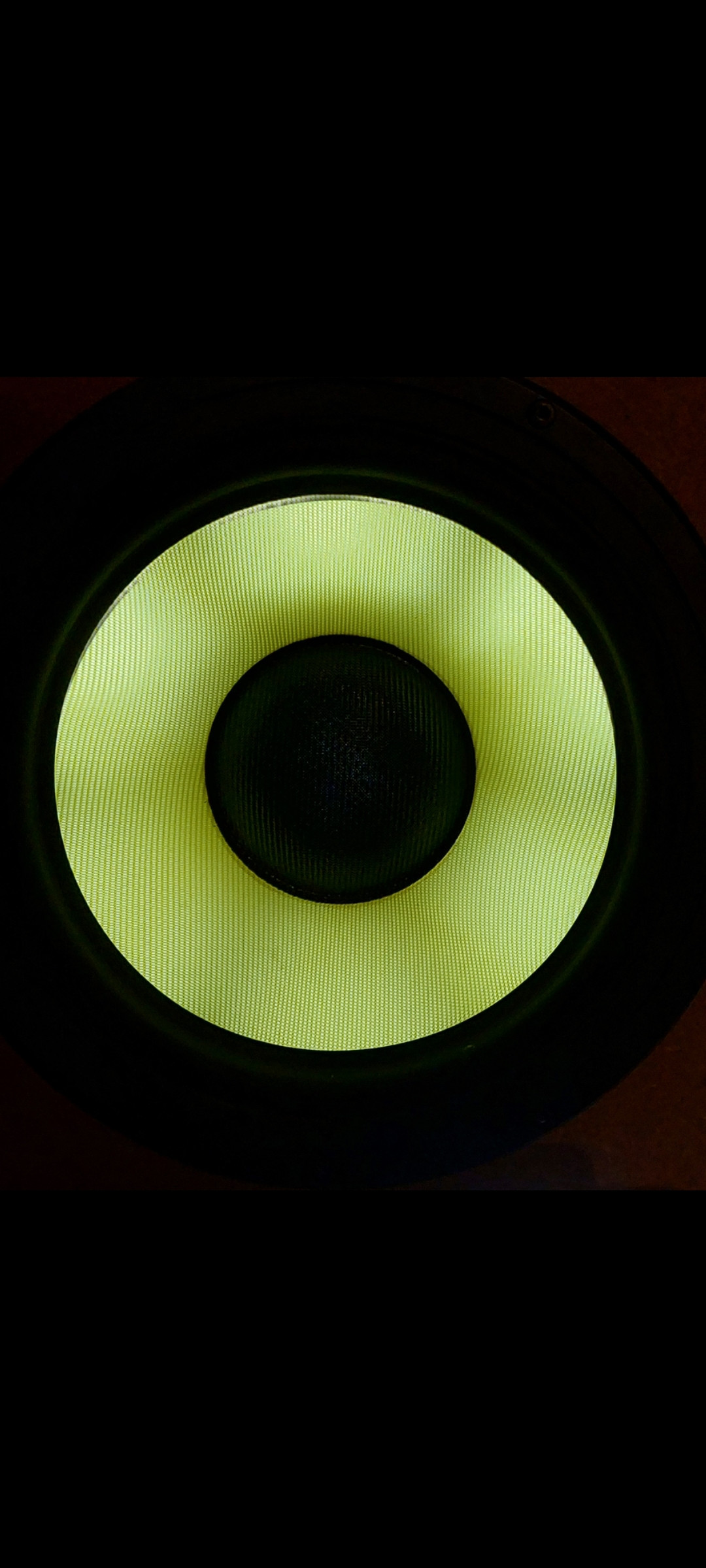 Hab mal spaßeshalber eine Taschenlampe in das Gehäuse gestellt, durch verschiedene Lichtfarben sollten sich auch verschiedene Membranfarben erzeugen lassen.