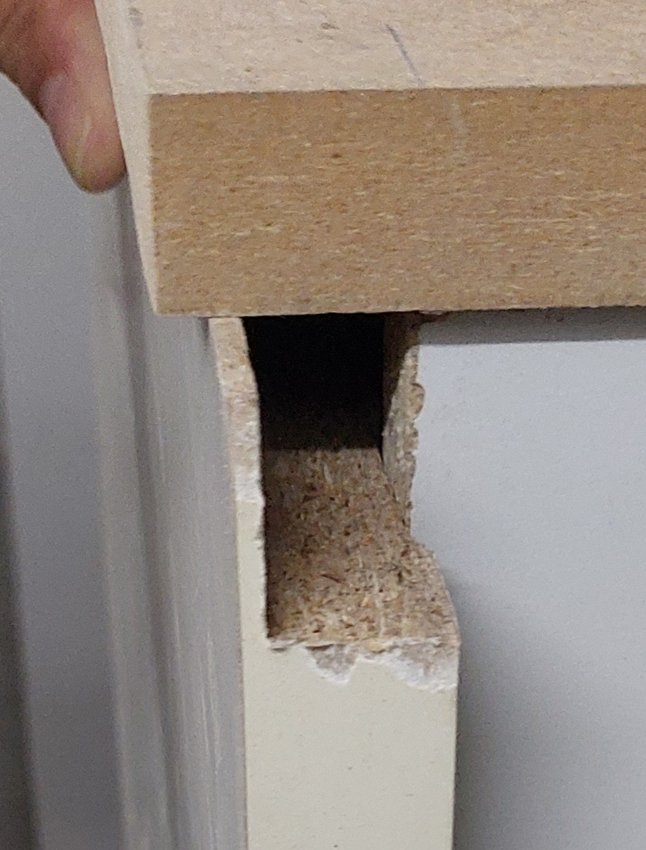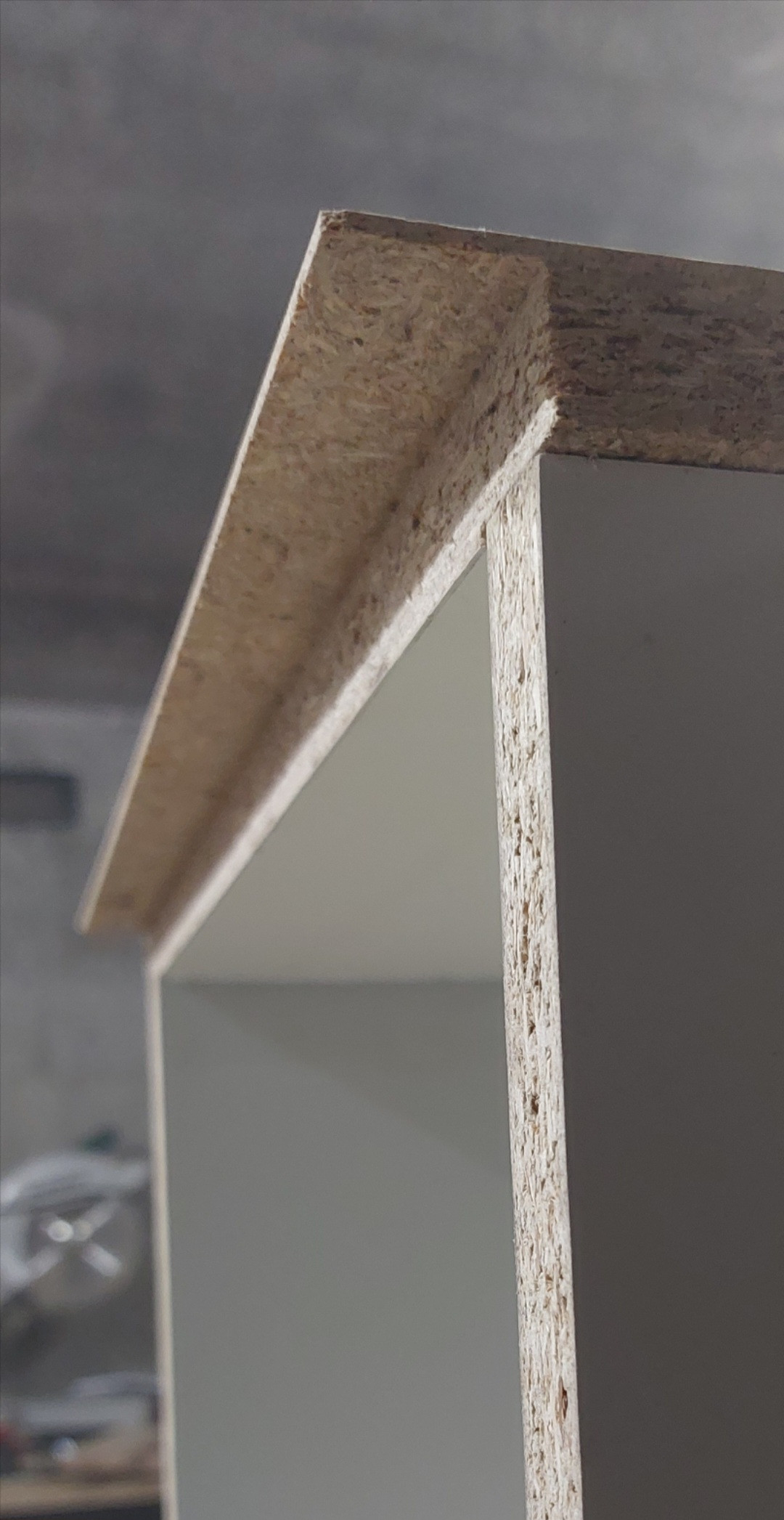Die erste Seitenwand ist verklebt, so ausgefräst das die Schallwand in diese Eintauchen kann. Der Überstand ist 2mm hoch und soll ein sichtbarwerden der Stirnseite später durch die Folie verhindern ohne eine komplette 3mm MDF-Platte flächig über die komplette Seite kleben zu müssen. So sind die Kanten des Seitenteils und der Schallwand gegenseitig versiegelt. Morgen werd ich die Schallwand vorfräsen und einleimen und erst dann die zweite Seitenwand ausfräsen und anpassen. Hatte die zweite Seitenwand schon fertig als ich blöd hinkam und der 2mm Überstand abbrach. Wollte erst beide Seitenteile Verkleben und dann die Schallwand, scheint aber so sinnvoller da dann dieser erste Überstand bereits mit verklebt und fest ist.