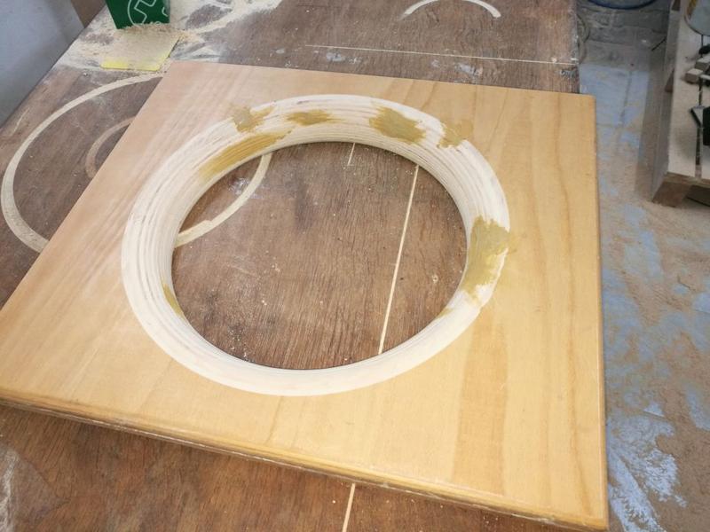 Weil ich noch ein überarbeitetes WS 40 NG übrig habe und auch noch von meinen alten SUB T40 ( Damals Rundum 40mm Buche Multiplex ) das Holz.... kam mir die Idee ...ich mach mir ein kleines 70-75 l Gehäuse um die Aria nach untenhin zu unterstützen....