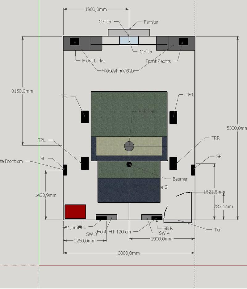 Sicherlich ist das keine High-End Lösung. Ich wollte aber an jeder Postion den gleichen Lautsprecher. Sobald ich eine akustisch Transparente Leinwand habe kommt der Center auch noch etwas höher und alle Lautsprecher sind fast auf Ohrhöhe ( +/- 5 cm ).