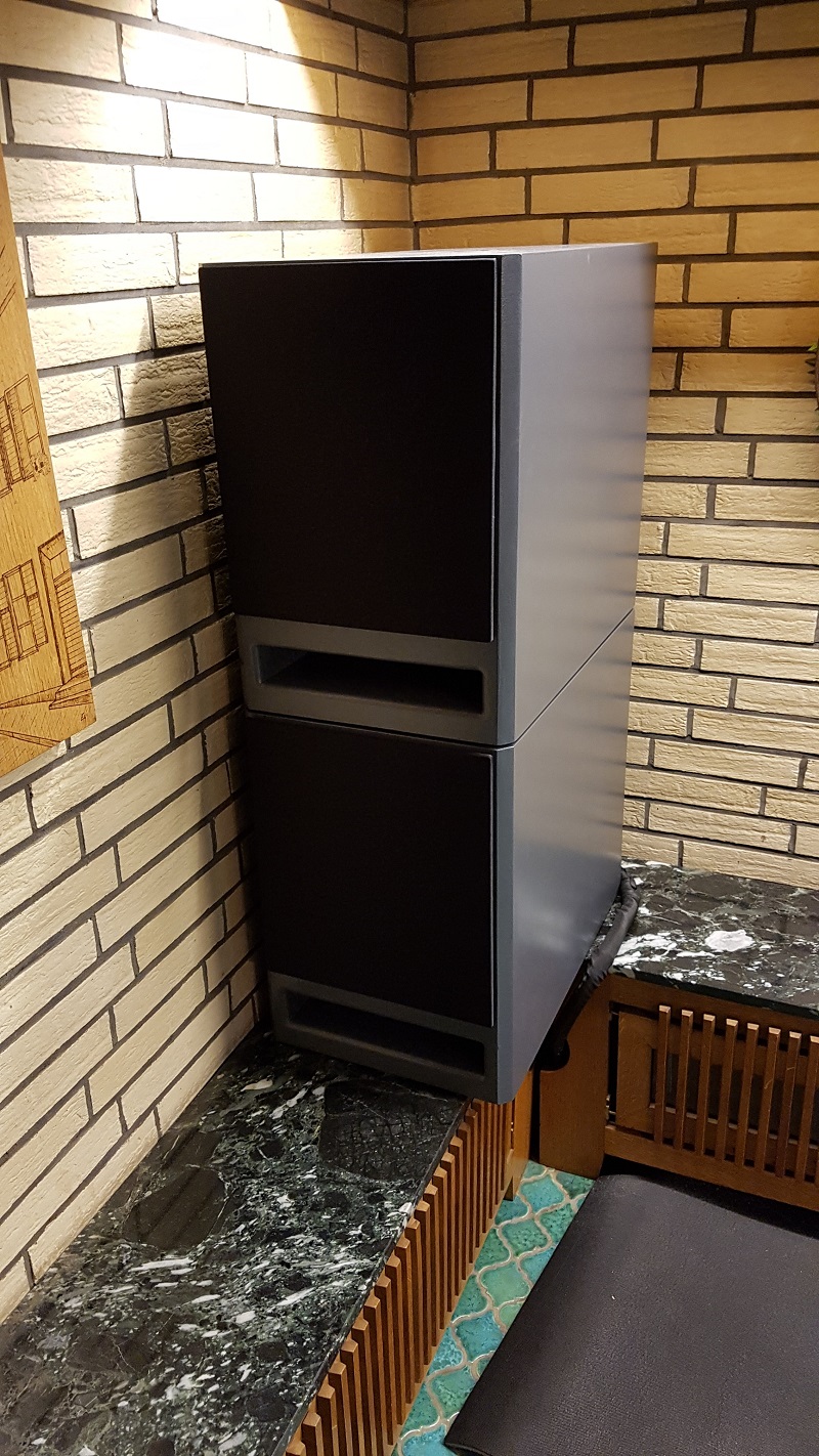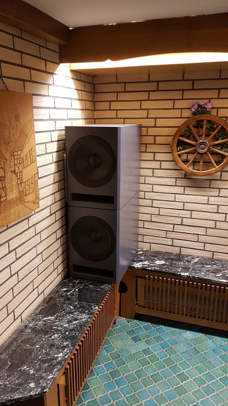 Die Subwoofer nimmt man im Zusammenspiel mit den Atlanten nicht wirklich wahr, sie verhindern lediglich das o.g. Bassloch recht effektiv, wenn auch offen gesagt nicht zu 100 %. Sie spielen natürlich nicht ganz so tief wie die Atlas, können aber sehr viel Druck aufbauen, wenn man möchte. Mit dem Mini-DSP musste ich wegen der Eckaufstellung bei 35 Hz ganz schön eingreifen, aber jetzt spielen sie sehr sauber und trocken. Leider gibt es nur einen möglichen Aufstellungsort, sodass ich sie stapeln musste.