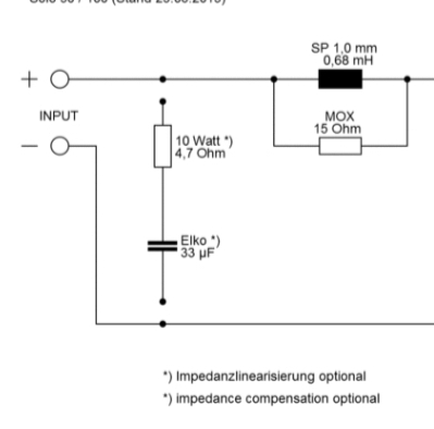 es gibt eig keinen Grund, irgendwelche Bauteile an den Eingang des Verstärkers zu schalten, schon gar nicht "Impedanz optional"