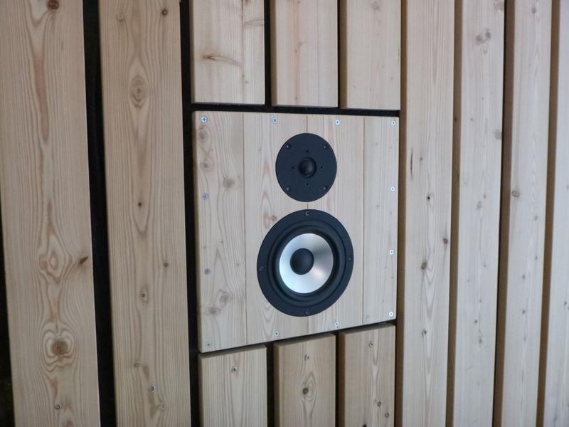 evtl die Fugen der Vertäfelung als Schattenfuge auf der Schallwand weiterführen, dann sieht man die Boxen fast gar nicht mehr....