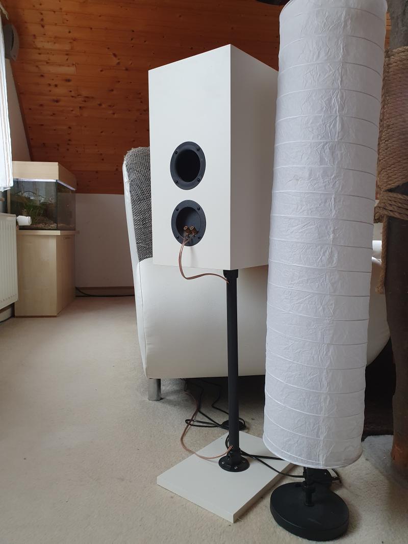 Nachdem ich meinen Keller aufgeräumt habe und dabei noch zwei W130S 4 Ohm und eine DT94 8 Ohm zu Tage traten, wurde es mal wieder Zeit, Säge, Fräse und Co anzu werfen. Heraus kam die SID, die uz fast 100% auf der Couplet light basiert: die 130er sind seriell geschalten. Gehäusevolumen entspricht der Couplet. Beim BR-Rohr habe ich ein bißchen in die Trickkiste gegriffen: den Flansch habe ich mir gedruckt, sodass ein handelsübliches Abflussrohr eingesteckt werden kann. Damit kann ich im Nachhinein noch die Abstimmung finalisieren, ohne jedes mal ein BR-Rohr zersägen zu müssen.