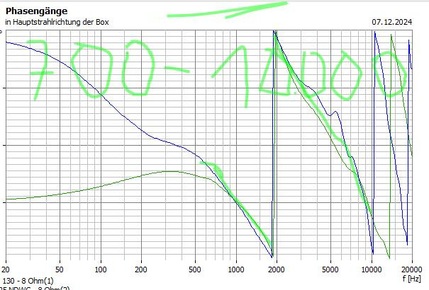 ich habe inzwischen vom neuen HT drei Pärchen verbaut, auch mir gefallen die kleinen Dinger. Aktuell bin ich an der "was braucht man mehr" und die Mittel und Hochtonsektion spielt schonmal vor sich hin. In der Messung war nichts Auffälliges, ... Morgen möchte ich die untere Trennung machen und final bestätigen ob die fliegend verdrahtete und später verlötete Weiche in Ordnung ist.