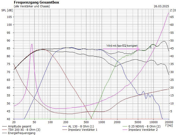 Wieder einmal (wie bei "Sonja") ging das super, mit Boxsim Weiche erstellt, bauen, anhören, fertig. Der Frequenzgang isz mit meinen TV-LS Studio2 KE nahezu gleich.