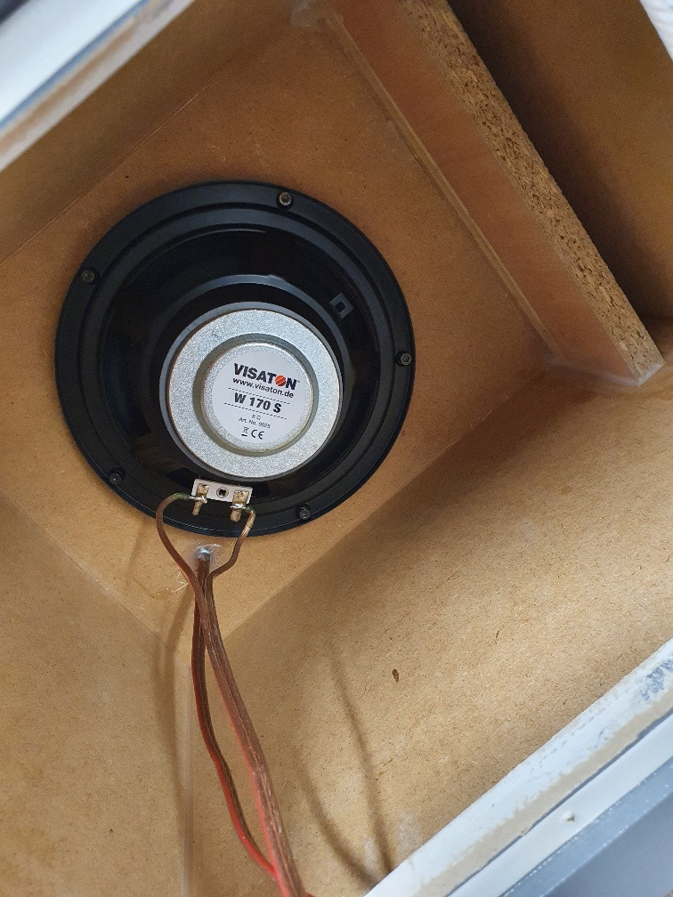 Er ist auf Basis des ASM W17 von Visaton entstanden, ich änderte ihn zu einer passiven Version, die Länge des BR Kanals vergrößerte ich um 6cm, für eine tiefere Abstimmung und nutze den W170S in der 8-Ohm Version, in Zusammenspiel mit der Weiche ergibt sich genau eine Anschlussimpedanz von 4 Ohm.