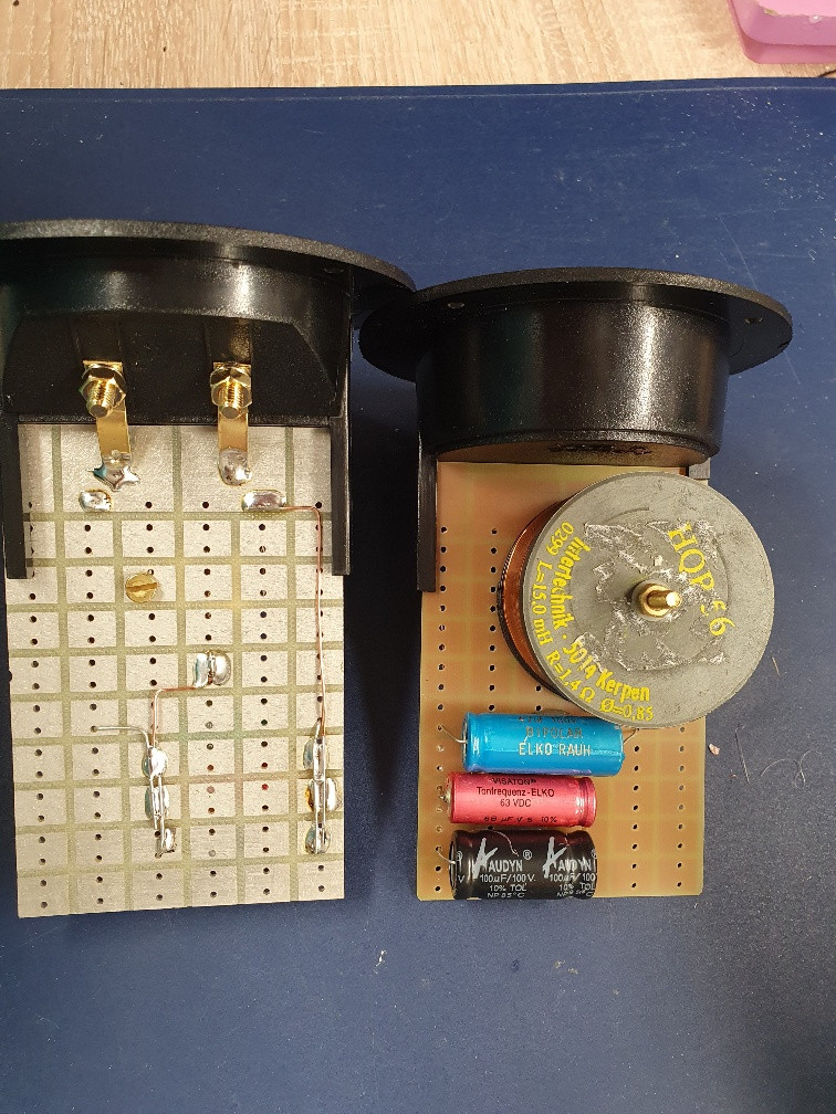 Ich erinnere nicht mehr ganz genau, wie / ob sich der Pegel der Treiber im vorgesehen Einsatzbereiche unterschied, doch weiß ich noch ganz genau, dass die gefürchteten Mitteltonresonanzen bei einer gezielten Ansteuerung des "hinteren" deutlich geringer ausfielen.