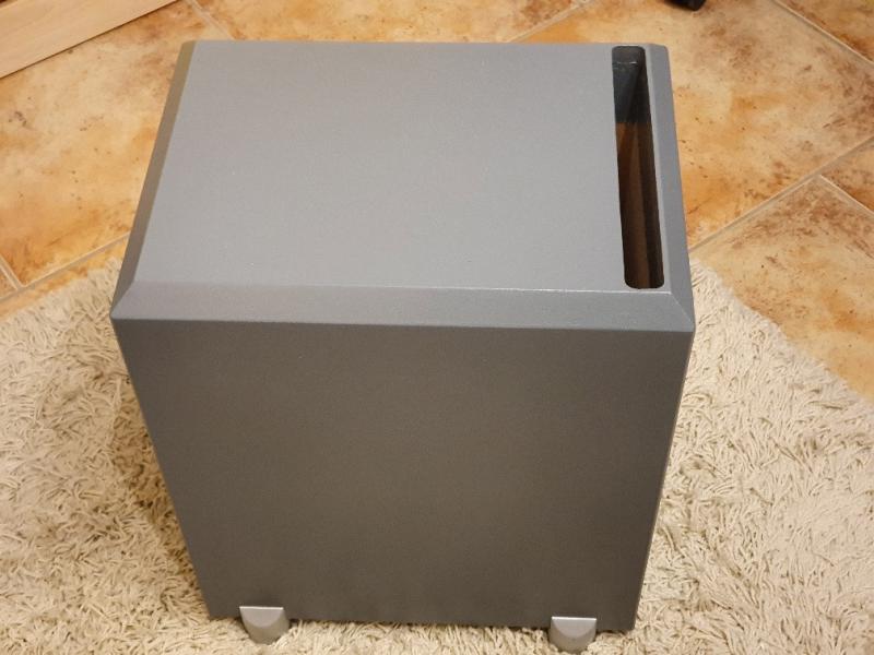 Die Anschlüsse zeigen nach unten, so lassen sich die Anschlusskabel gut im Boden verstecken und der BR-Kanal mündet an der oberen Seite nach Außen, ich finde, das gibt dem Gehäuse auch optisch eine interessante Note. Lackiert habe ich das Gehäuse in silbergrau.