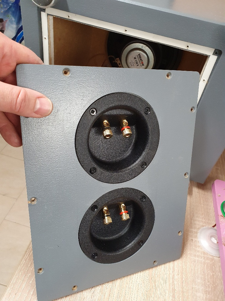 Die Rückwand ist eingefräst und entnehmbar, erleichtert die auch spätere Montage/Demontage der Tieftöner.