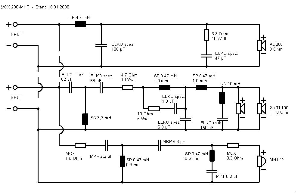 so wie ich verstanden habe ist bei dieser Vox eine KE drin und wird fälschlicherweise mit einer Weiche betrieben wo garnicht passen kann. Trennfrequenz und Pegel könnte vollkommen daneben liegen. Hat das jemand mal simuliert? oder bin ich jetzt zu negativ, dass es doch einigermaßen klingt. Ich habe da meine größten Zweifel.