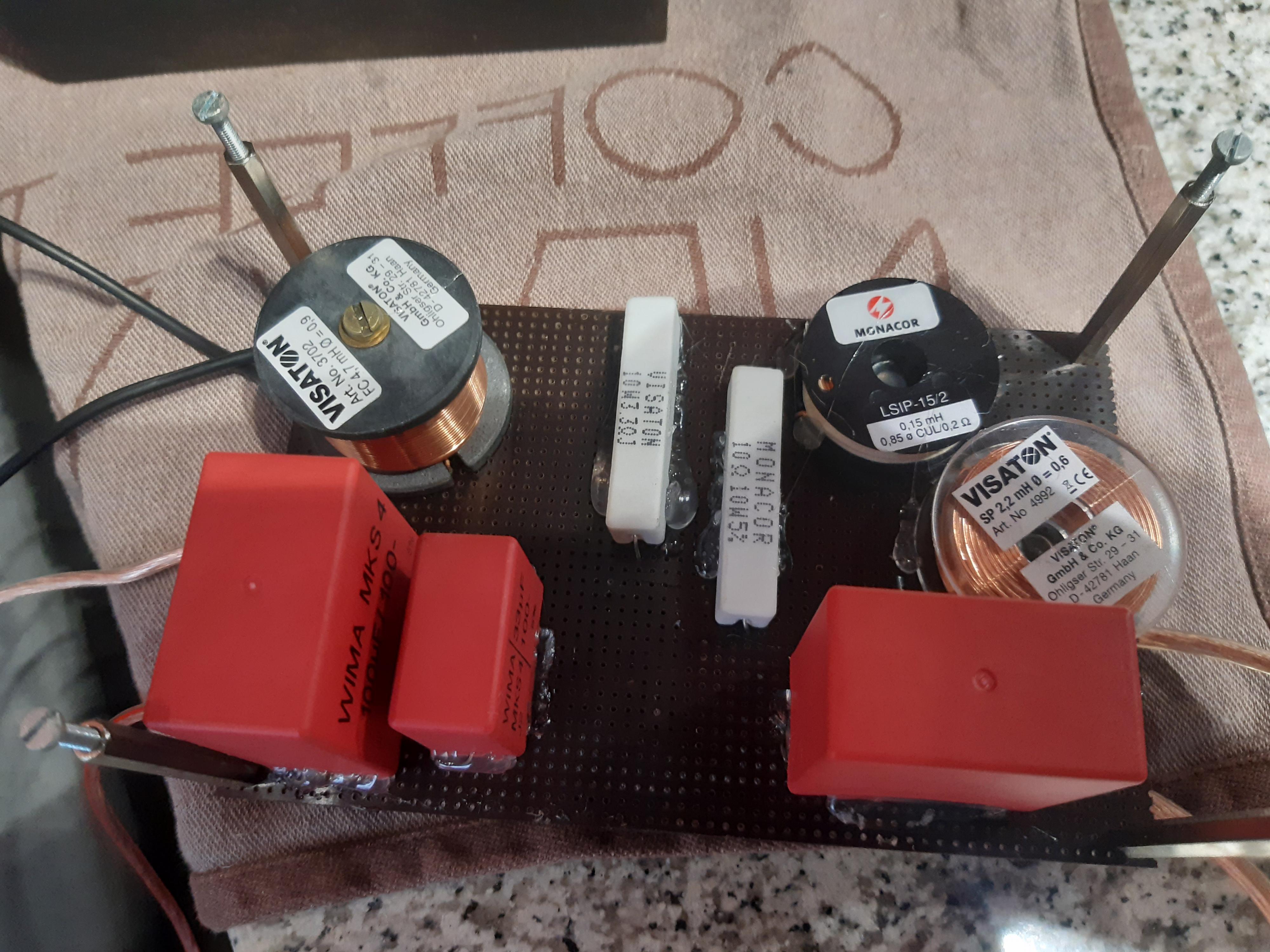 Hier mal ein Bild der Weiche.Ich bin damit bei 3,2 Ohm gelandet,was nichts