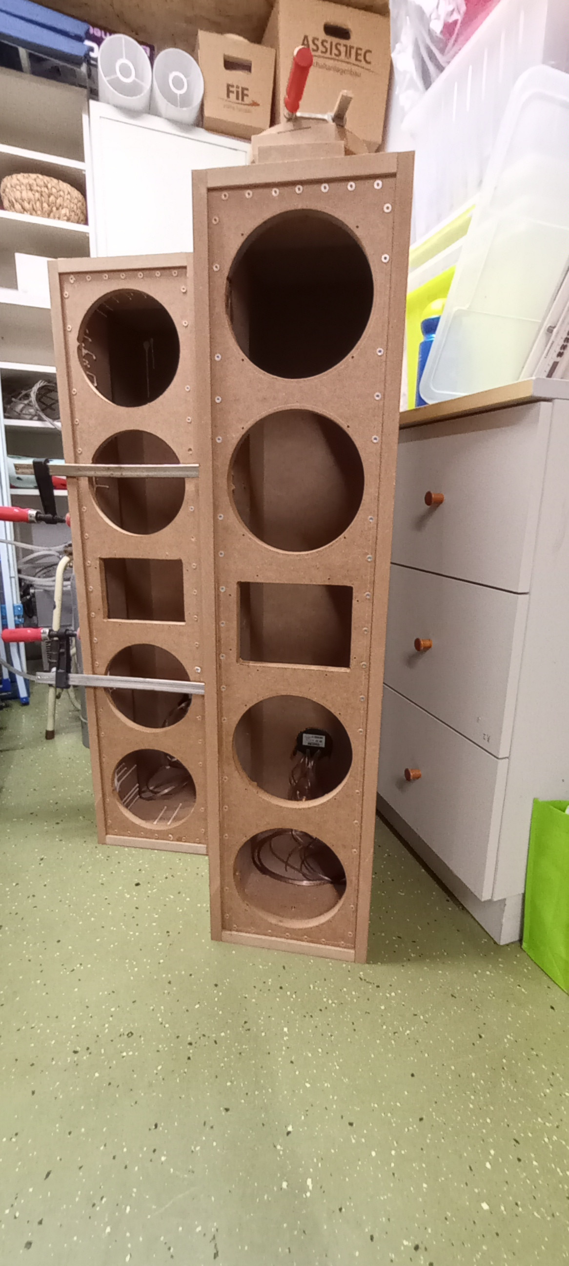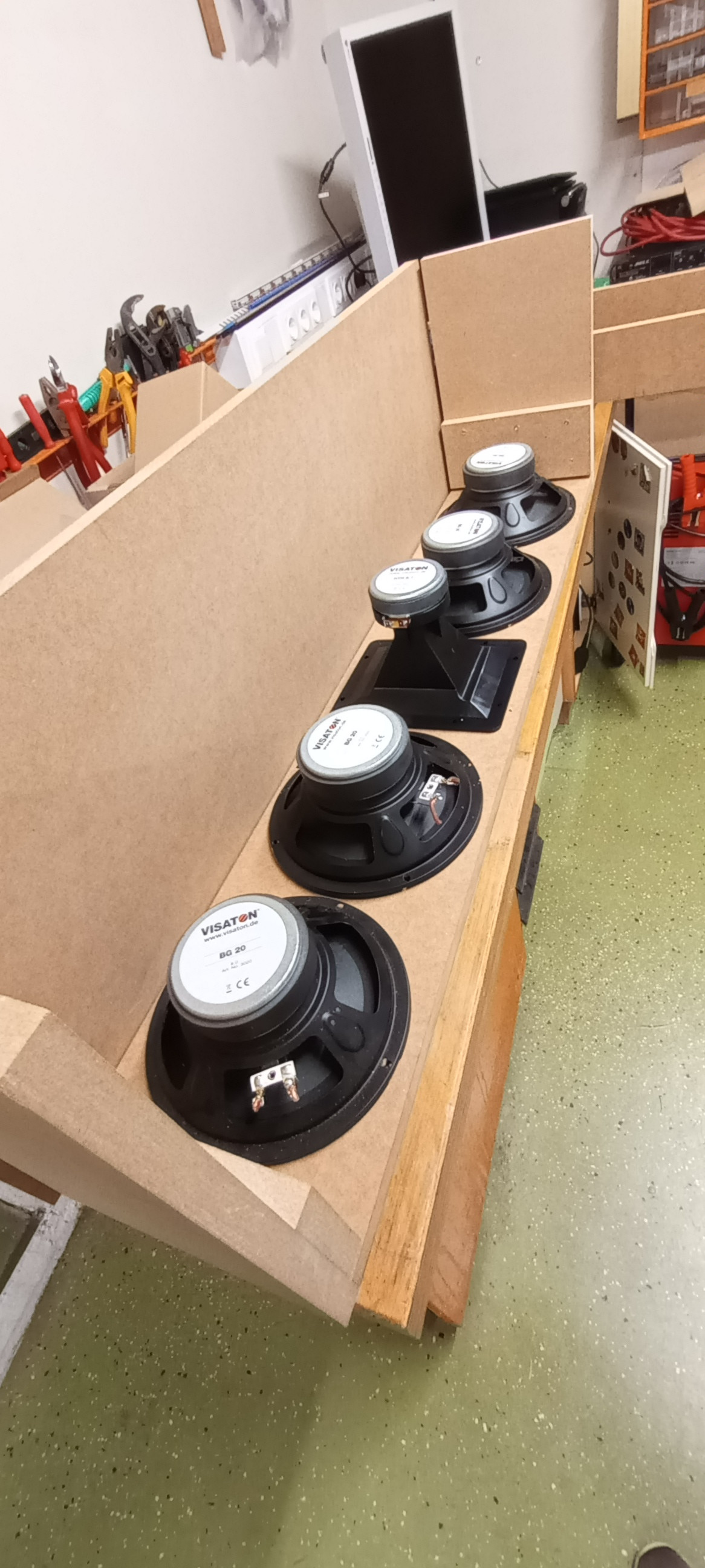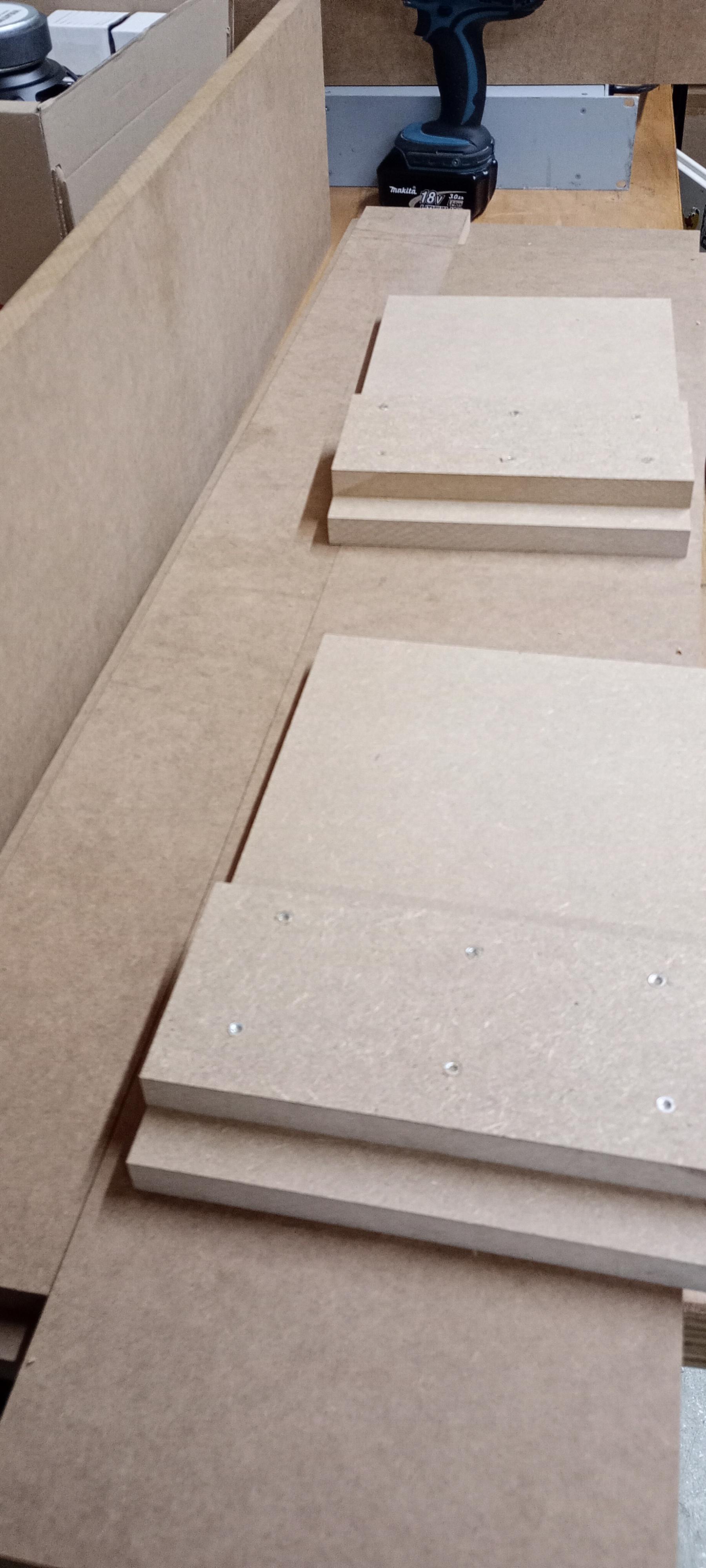 Rundum der Schallwand Auflage ist das MDF doppelt und es kommen 5 querverstrebungen noch rein die schräg sind.