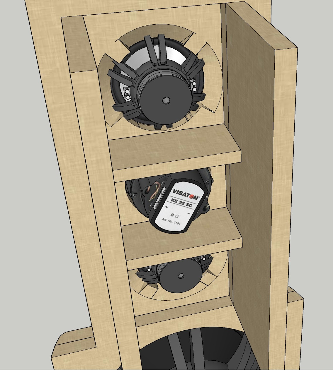 a. haben wir also zwei Endstufen und trotzdem eine Passivweiche im MT und HT. Diese Passivweiche macht nur die Trennung zwischen den beiden Treibern und da kann man die Weiche von Jürgen nehmen, da gab es auch schon mehrere Nachbauer. Elektrisch verbiegen geht aber immer noch über "alle" Frequenzbereiche am DSP.