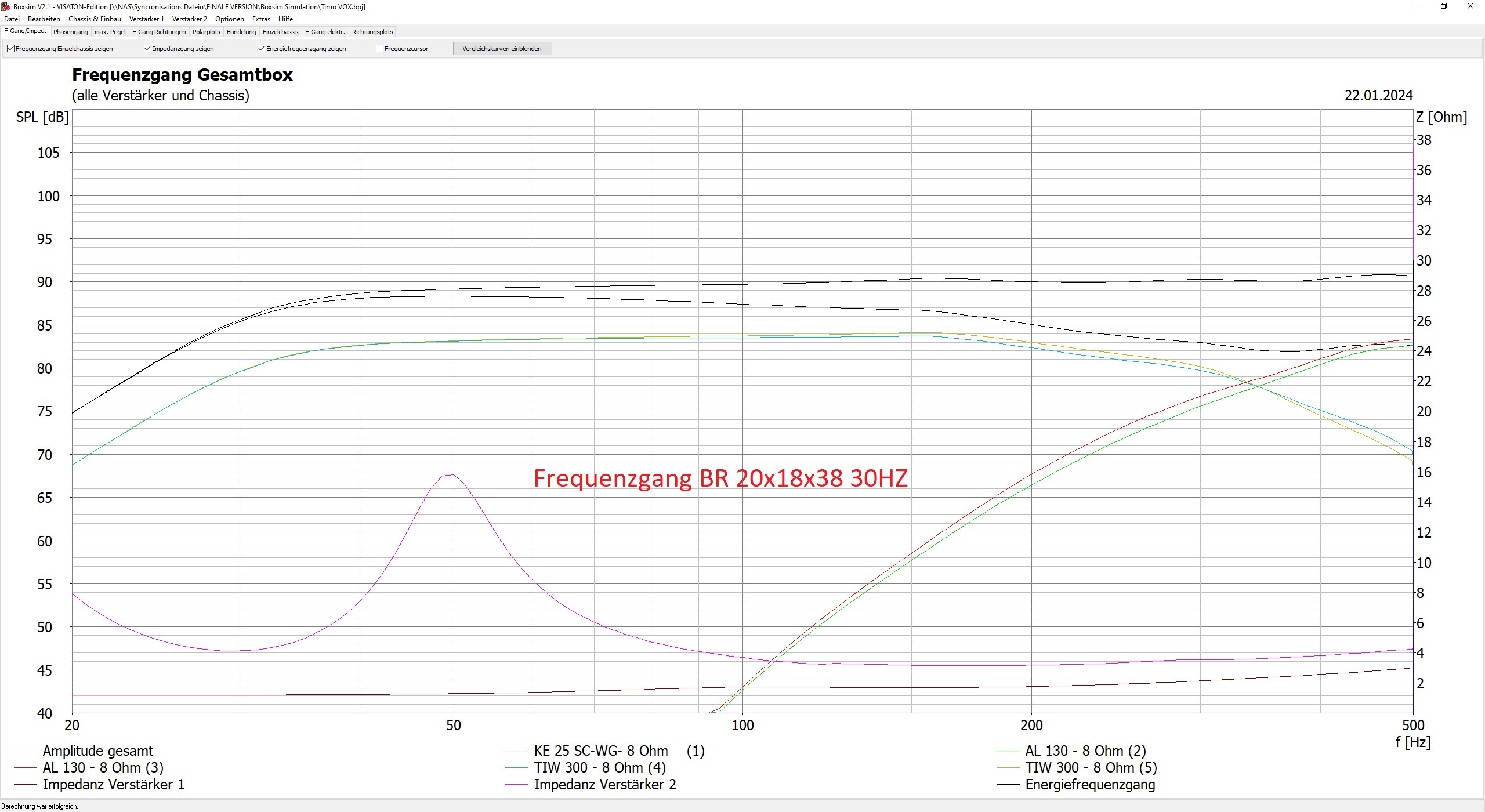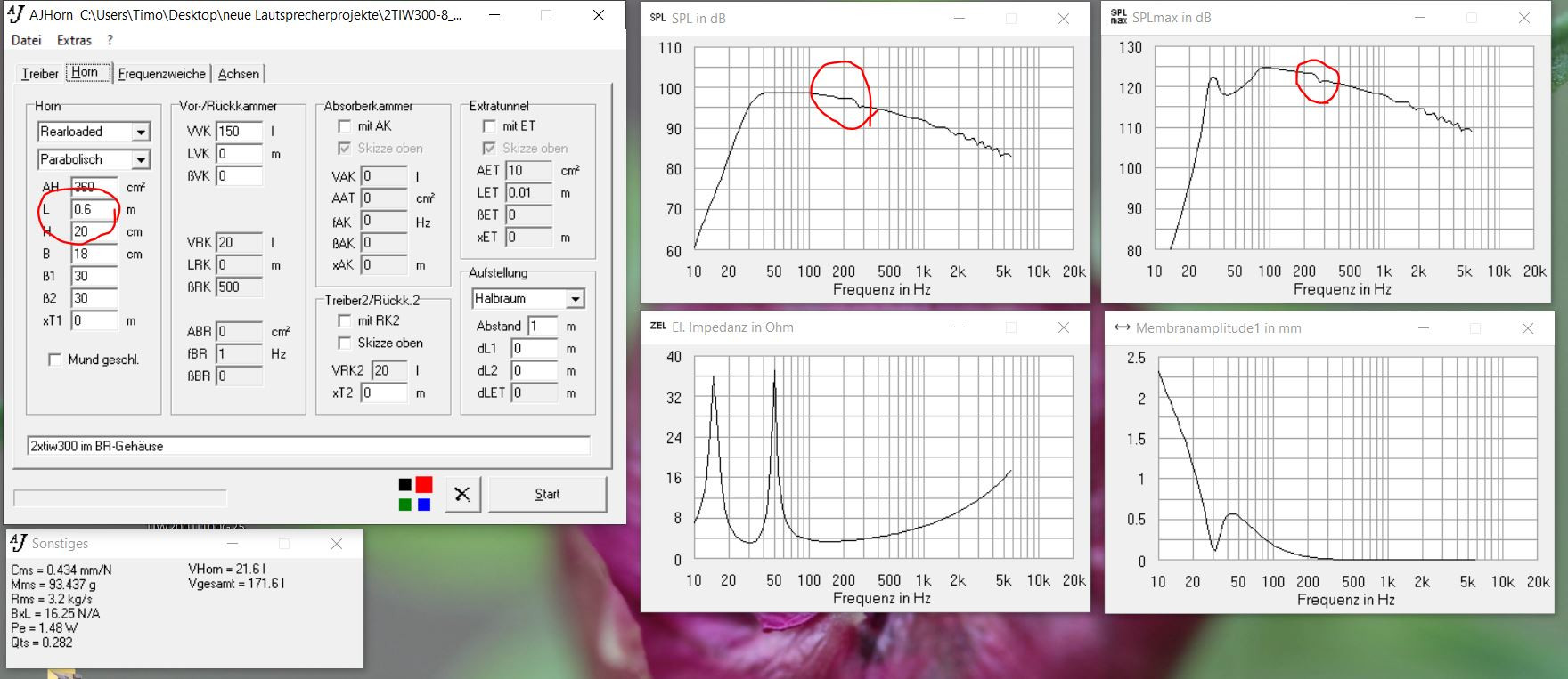 Die Abstimmung auf 30Hz habe ich übernommen gehabt von den anderen bereits geplanten Lautsprechern von euch mit 2 Tiw 300.