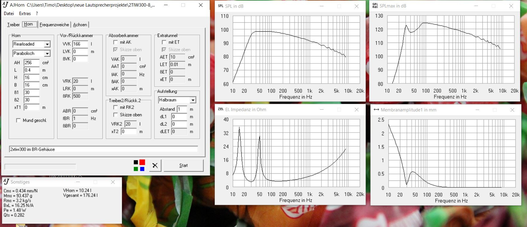 Bassreflex Abstände angepasst, Volumen 3L verkleinert da ich 2,2cm kleiner baue, macht aber nicht viel aus.