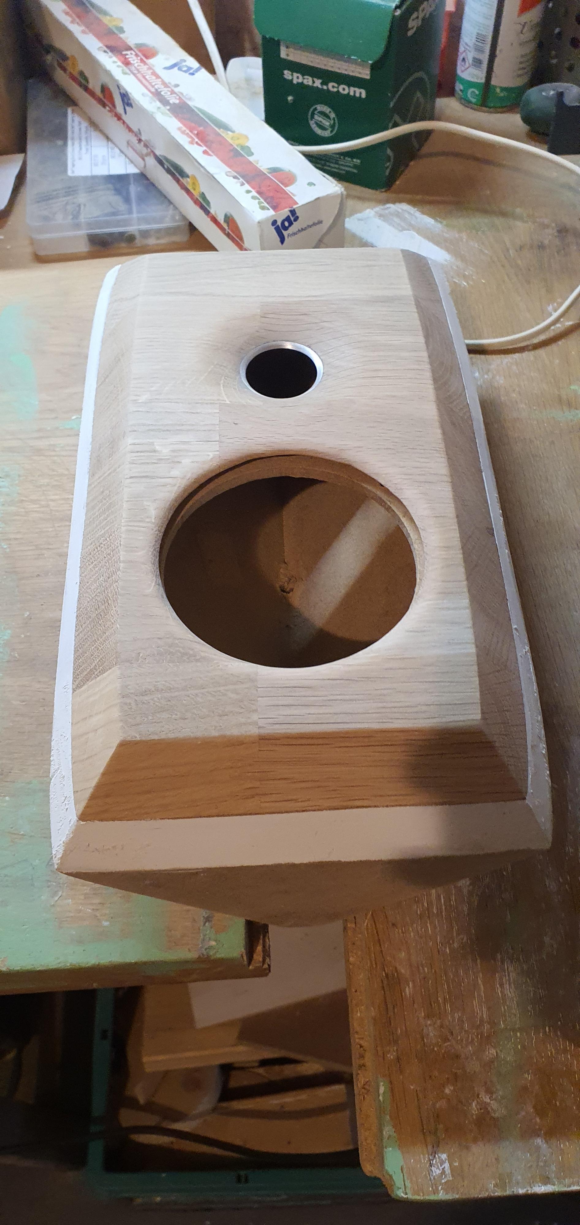 Ursprünglich war die Idee, die Aria Light WG umzuformen. Das nötige Volumen für den W100s wollte ich mit der Höhe der Box holen. Das wäre aber ein recht unförmiges, längliches Gehäuse geworden.