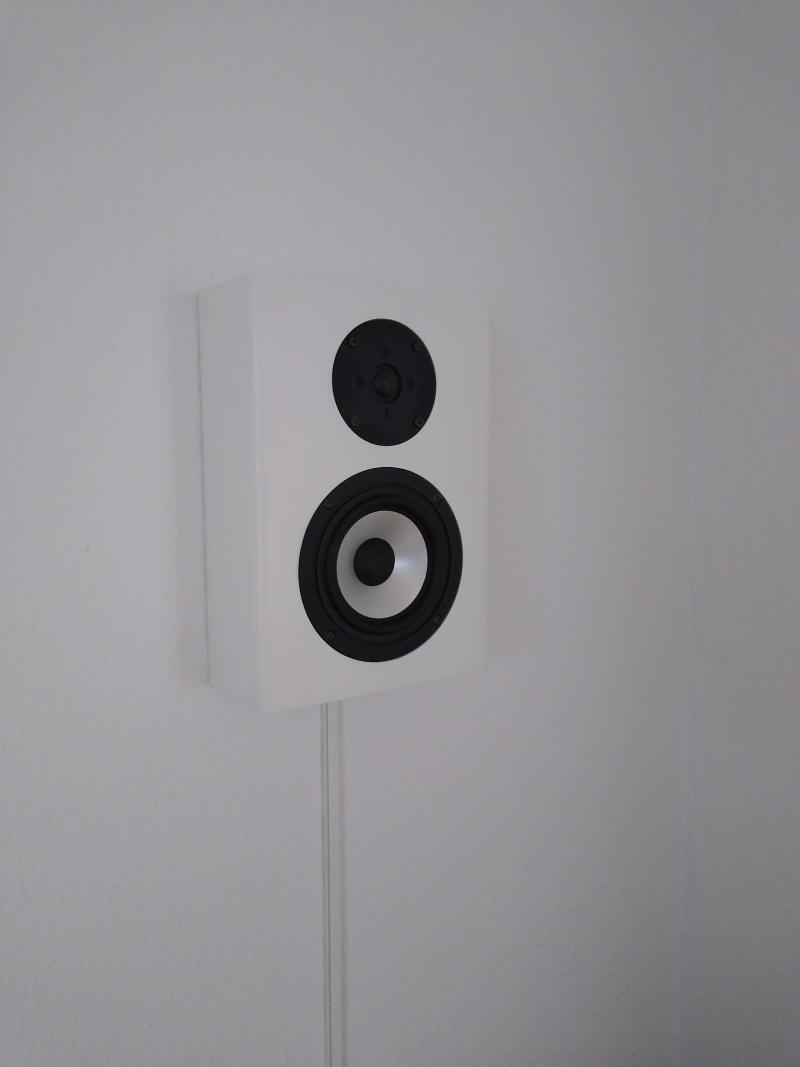 Sie sollen zukünftig meine Canton LE101 ersetzen. Da da Sofa direkt an der Rückwand steht, blieb mir nichts anderes übrig als Wandlautsprecher aufzuhängen bzw. zu bauen.