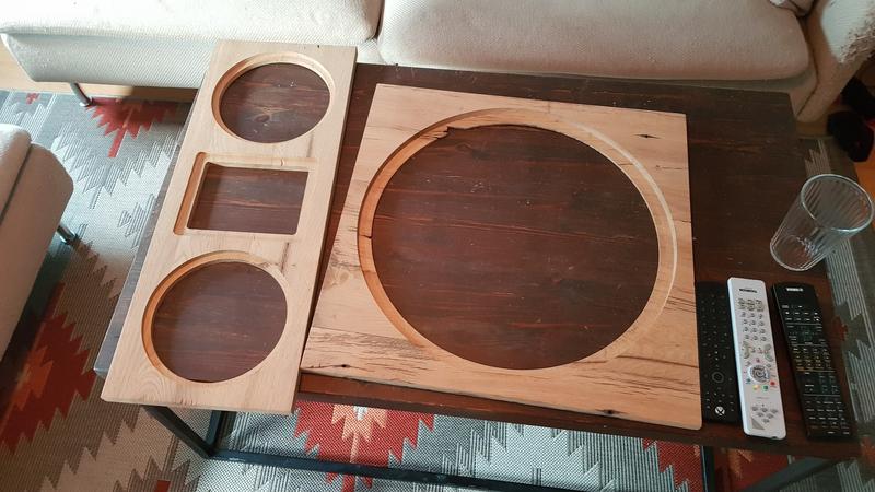 Ich habe auch noch 2 CNC gefräste Fronten aus 300 Jahre alter Eiche, die gratis dazukämen. Ursprunglich war ein hochglanz weißes Gehäuse mit aufgesetzter Holzfront geplant.