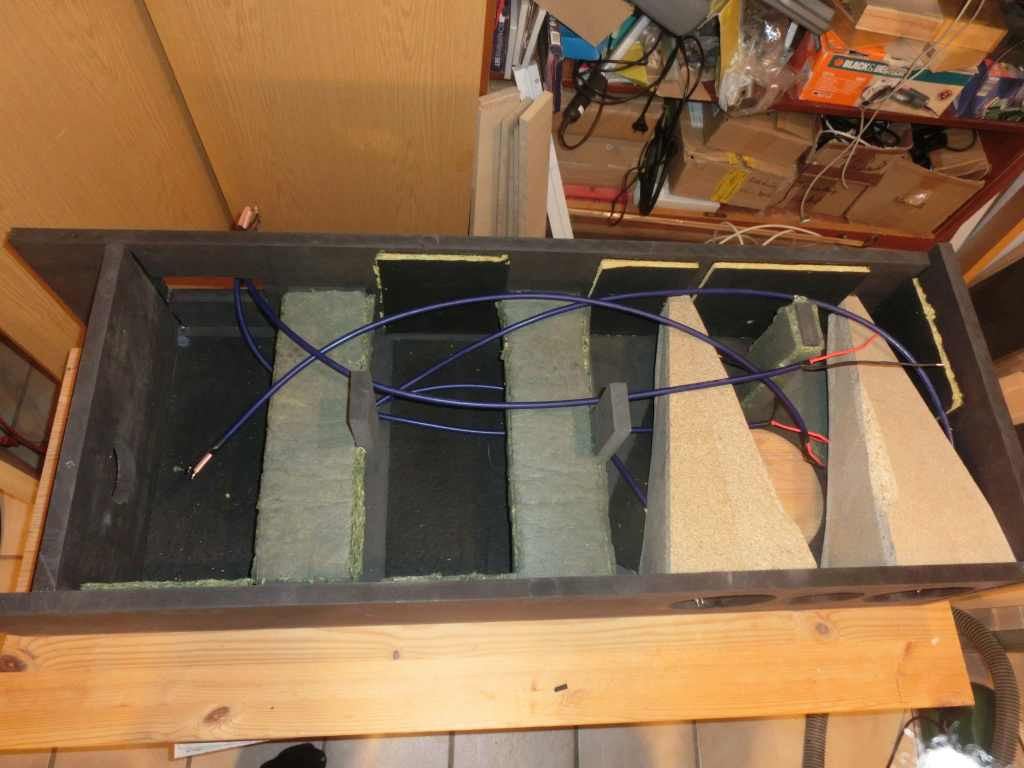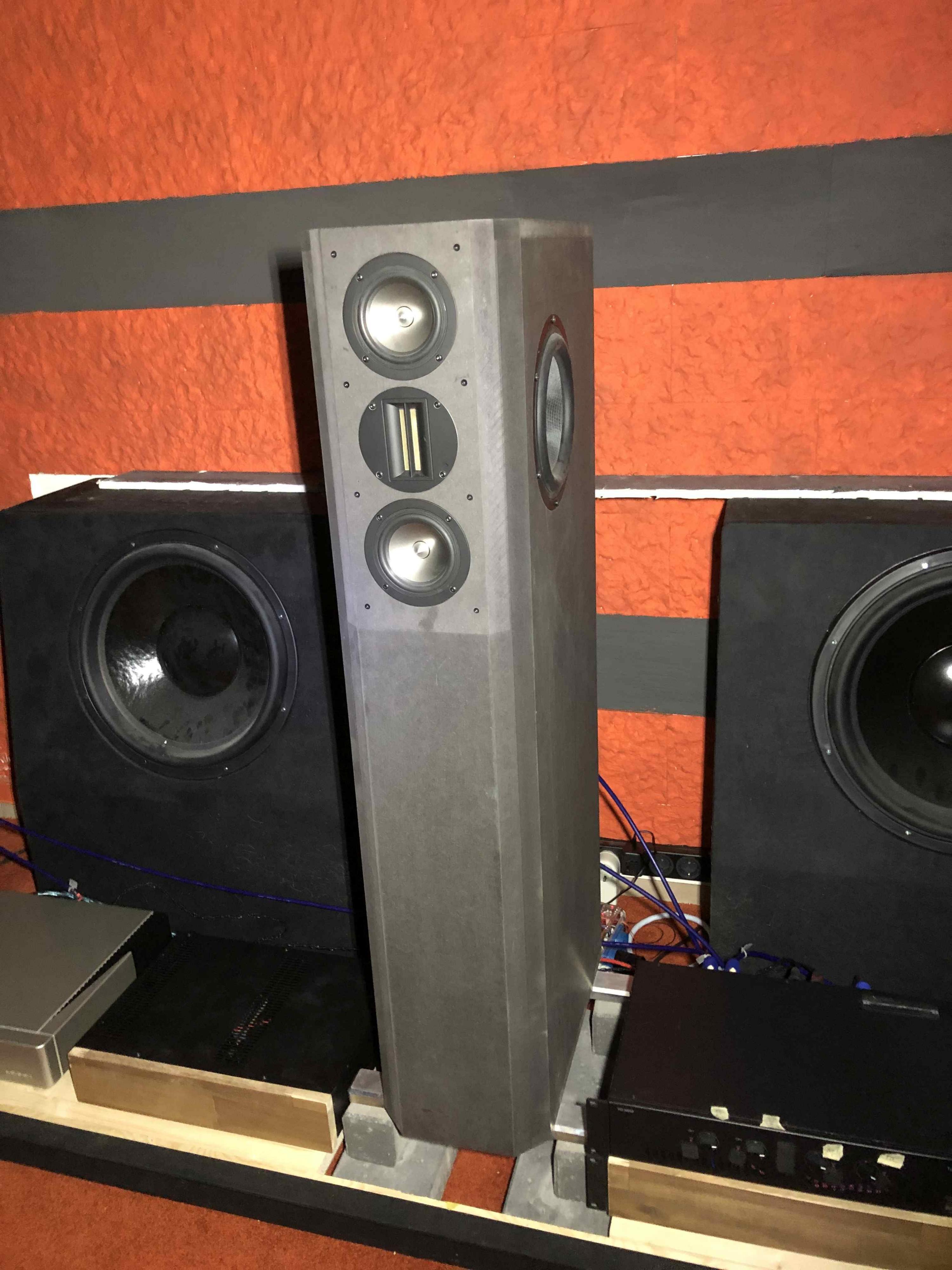 Achtung: das System ist teilaktiv, d.h. keine Frequenzweiche im MHT nach unten und im Bass (außer einen GHP-Kondensator, der optional angeschlossen werden kann). Ich habe es bei 160Hz aktiv mit 24dB getrennt.