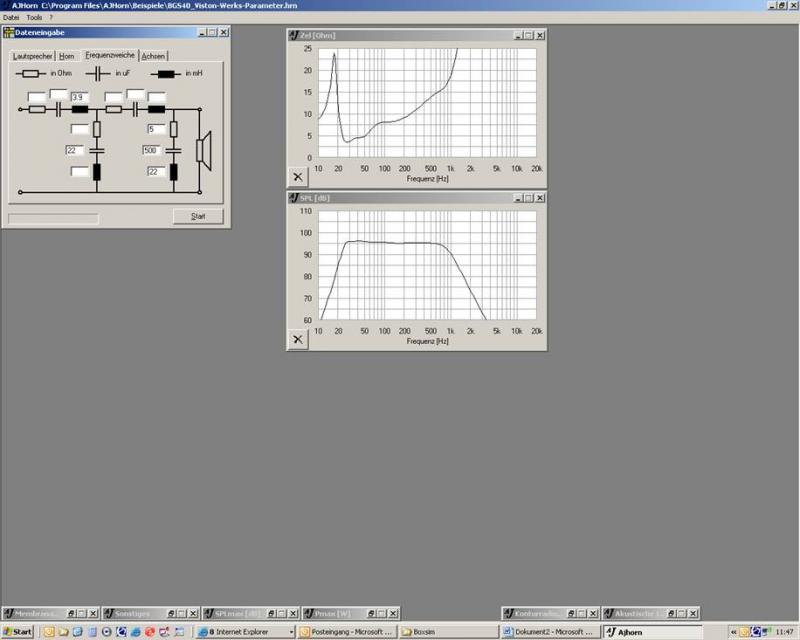 Außerdem kommt es unter AJ-Horn zu einem schönen Überschwinger, wenn ich mit 3,9mH und 47uF 12dB Filter.