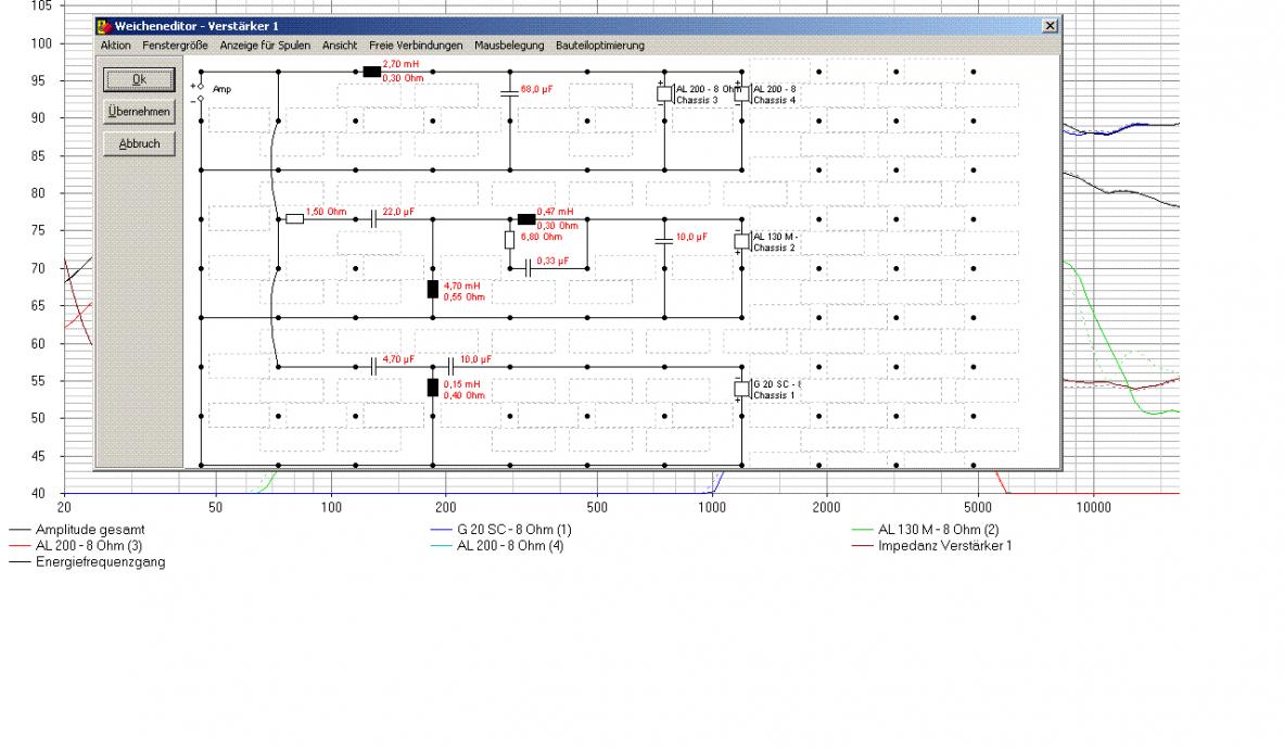 4. Dann Frequenzweiche editieren und den Optimierer anschubsen auf den vorgegebenen Wunschpegel und dem vorgesehenen Frequenzbereich.
